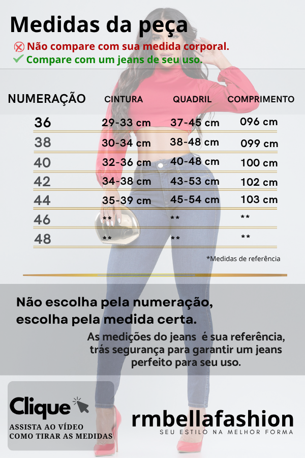 💡 Dica de estilo: Combine sua calça jeans feminina básica com blusas coloridas e acessórios elegantes para um look moderno, ou com peças neutras para um visual minimalista e sofisticado.